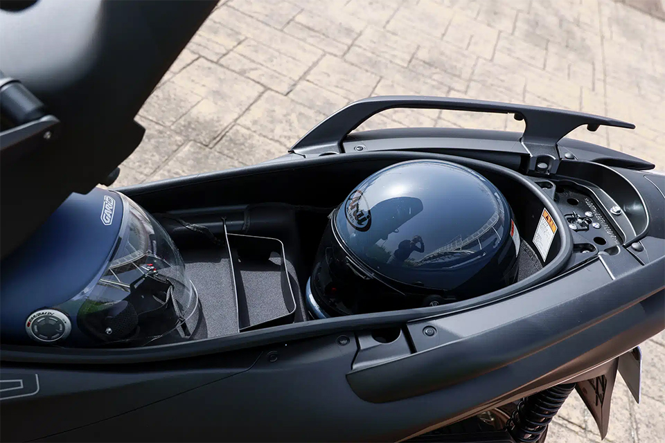 풀 페이스 헬멧을 넣을 수 있을 정도의 넓고 넉넉한 수납 공간을 자랑합니다.